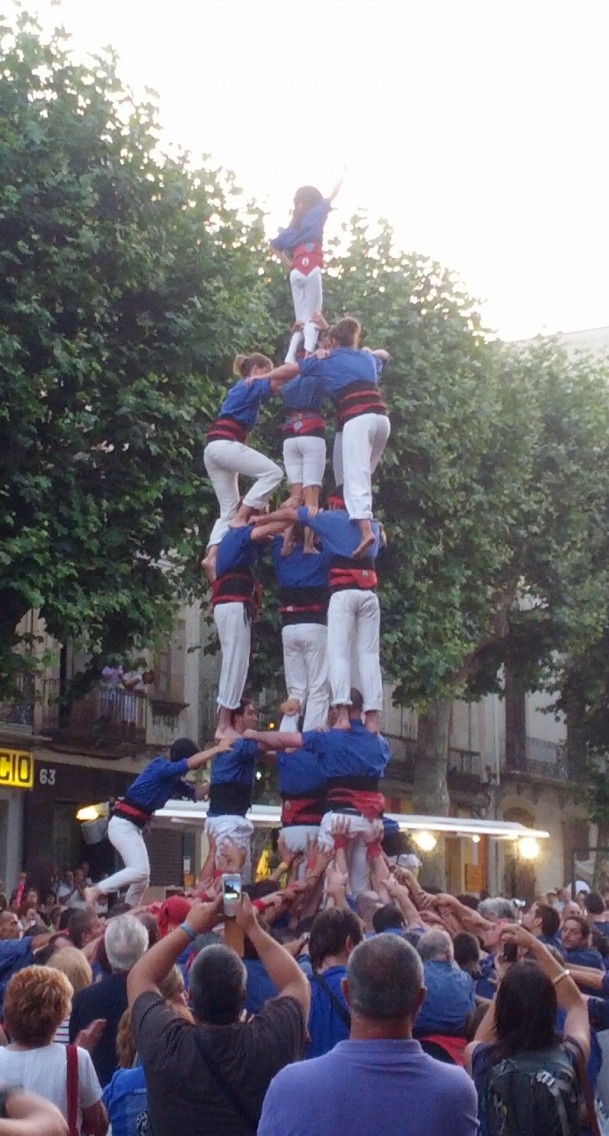[dropcap color=”#336600″ font=”arial” fontsize=”40″]E[/dropcap]ls Castellers d’Esplugues van actuar ahir al vespre a Arenys de Mar, on van descarregar el 3 i el 4 de 7 amb el pilar de forma molt segura, amb molt bones mides i pràcticament quiets.