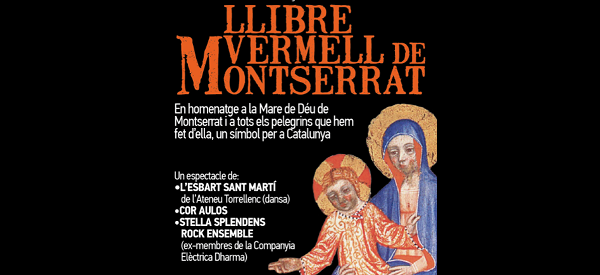 [dropcap color=”#336600″ font=”arial” fontsize=”40″]E[/dropcap]l proper 22 de setembre, el Llibre Vermell de Montserrat prendrà forma d’espectacle a la Catedral de Sant Llorenç de Sant Feliu de Llobregat. Es tracta d’un espectacle fruit d’una proposta de tres iniciatives separades i ben diferents: el rock de la Companyia Elèctrica Dharma (anomenats actualment Stella Splendens Rock Ensemble), els cants del Cor Aulos i les danses de l’Esbart Sant Martí de l’Ateneu Torrellenc.