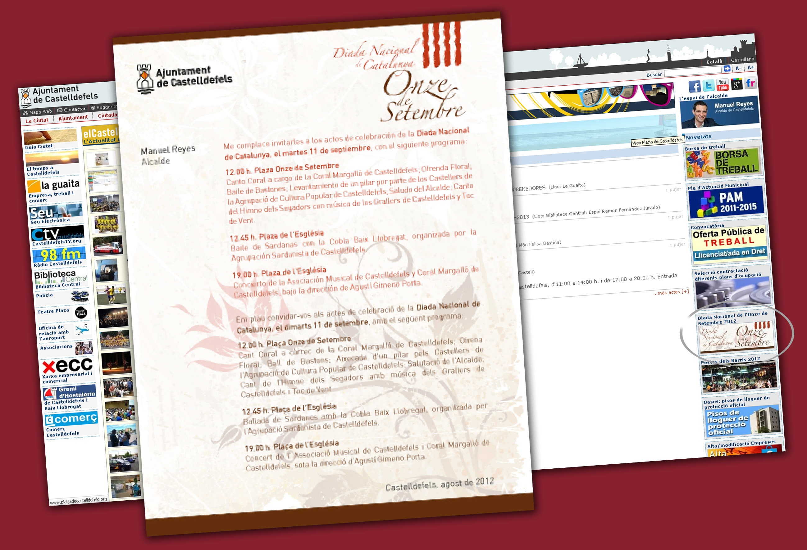Enguany, l’Ajuntament torna a titllar la Diada de ‘nacional’ (l’any passat va prescindir del qualificatiu) però ha fet molt poca publicitat dels actes. El PP “fins que no va arribar al govern mai havia fet ofrena floral al monument a la senyera de la nostra ciutat que tants esforços va costar aconseguir”, ha declarat el partit en un comunicat. En efecte, el grup municipal popular no participava en els actes mentre era a l’oposició. El maig del 2011, però, va guanyar les eleccions i el juny d’aquell any Manu Reyes va esdevenir el nou batlle, posant fi a 32 anys de governs socialistes.