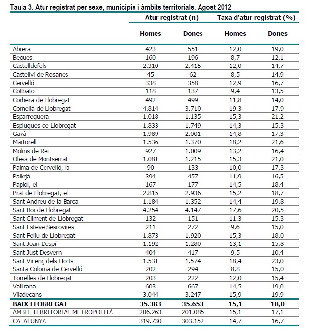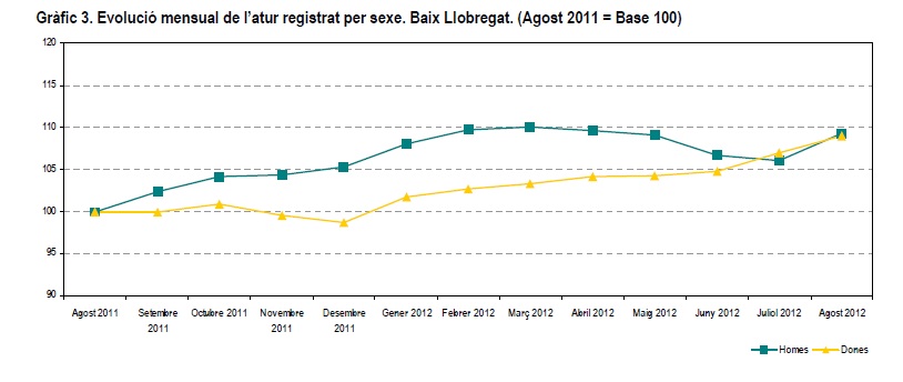 [dropcap color=”#336600″ font=”arial”]D[/dropcap]’acord amb l’informe de l’Observatori comarcal del Baix Llobregat, l’augment de l’atur de juliol es va donar només entre les dones amb 736 aturades més, ja que en els homes va disminuir la xifra d’atur en 197 persones. Per primer cop en els últims mesos, doncs, el nombre de dones registrades a les oficines del servei d’ocupació superava al d’homes.