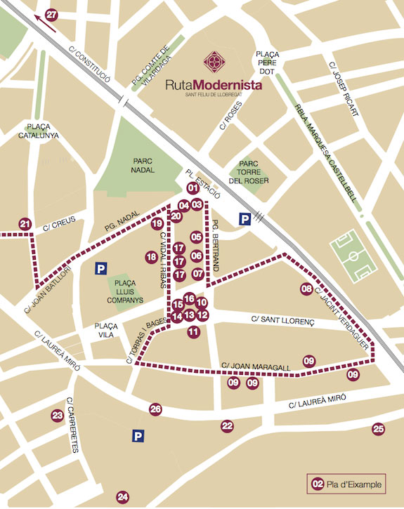 [dropcap color=”#336600″ font=”arial”]L[/dropcap]a ruta comprèn més de 25 espais, entre els quals destaquen diverses cases del passeig Nadal, el carrer Joan Maragall o el passeig Bertrand, així com la plaça de l’Estació, o el cementiri municipal, entre d’altres.