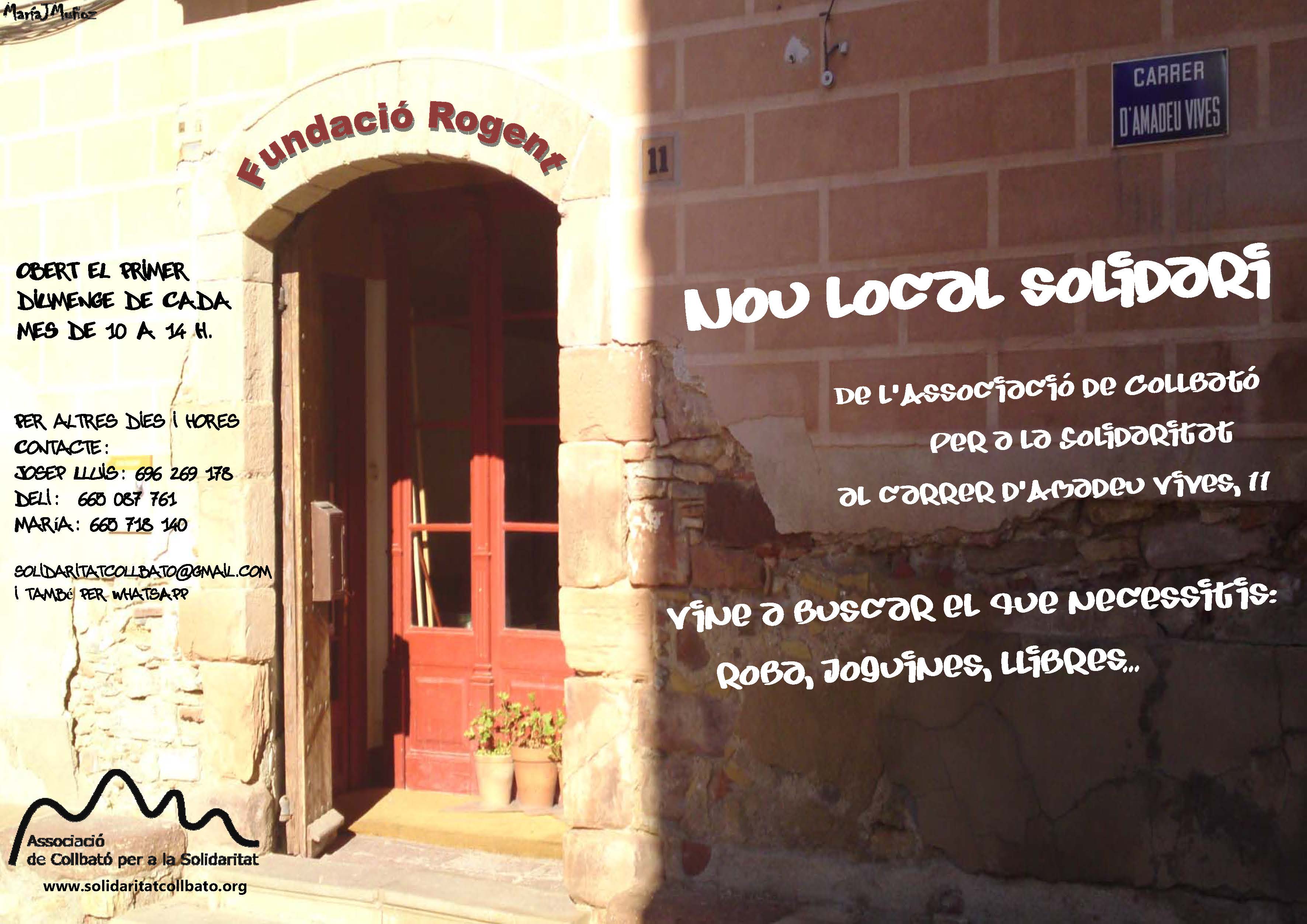 Per tal de fer ús del servei que ofereix aquest espai en diferent horari a l’establert pot contactar amb l’entitat a través del correu: solidaritatcollbato@gmail.com