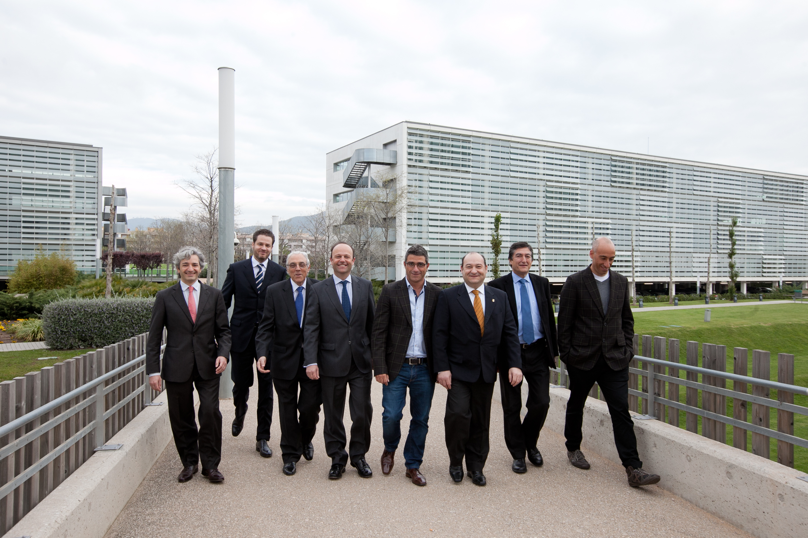 D’esquerra a dreta: Guillermo Ravell (Goodman); Eduardo Ceballos (Neinver); Jaume Calbet (Calbet Electrodomèstics); Jaime Aguilera (Unilever); Manel Jadraque (Desigual); l’alcalde Carles Ruiz; Ramón Asensio (Roca) i Sergi Castresana (Desigual)