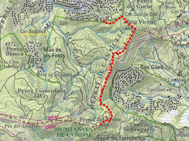 El Puig Vicenç (468) i la Penya del Moro (467) formen part del Serrat de Can Güell, la zona més oriental de les muntanyes de l’Ordal, a cavall entre els municipis de Vallirana i de Torrelles de Llobregat. El recorregut, de nord a sud, transcorre per senders de Petit Recorregut (PR-C) i permet gaudir d’excel·lents vistes de la zona costanera de la nostra comarca.