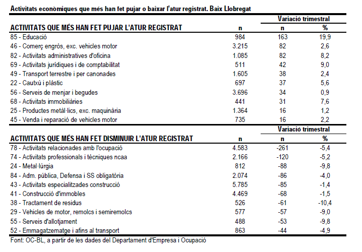 Font: Informe Trimestral de Conjuntura Laboral. 2n Trimestre de 2012. Observatori Comarcal del Baix Llobregat