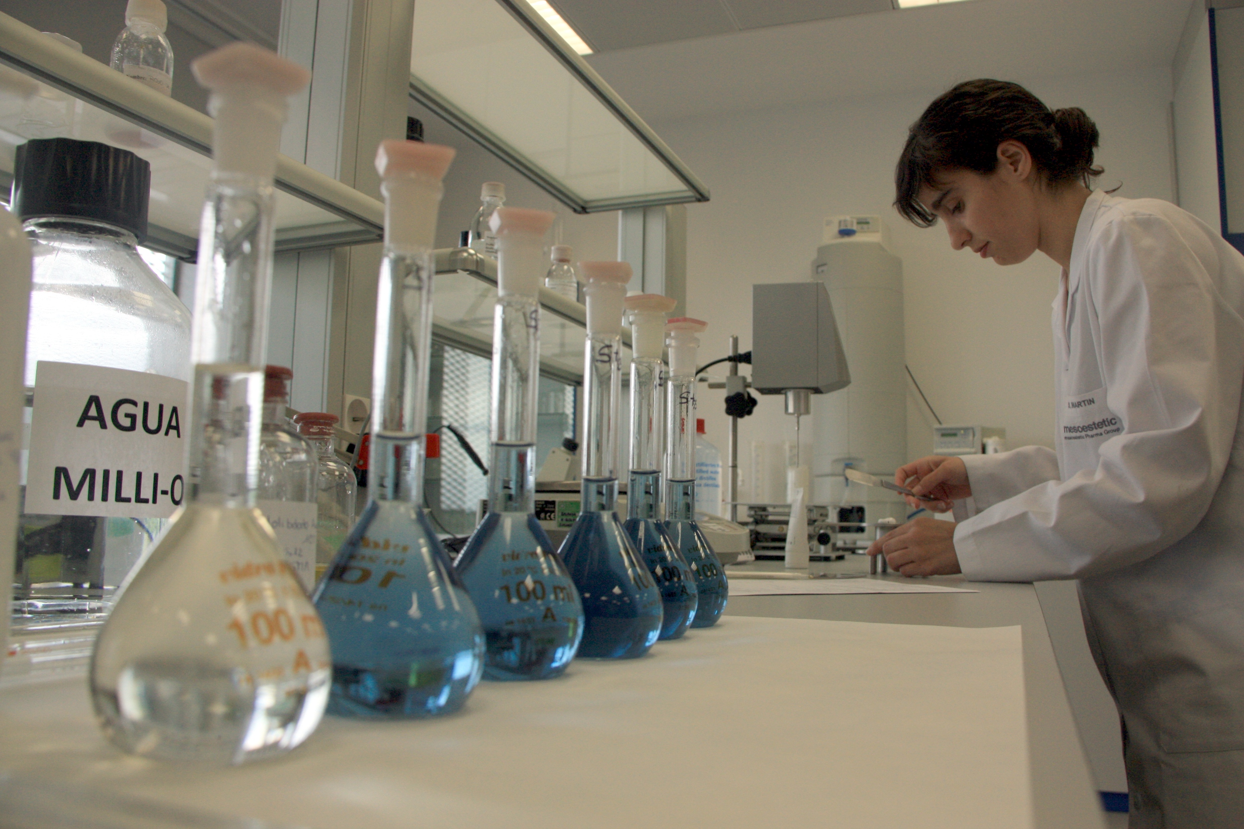 Una treballadora en un laboratori de la nova planta de Mesoestetic a Viladecans