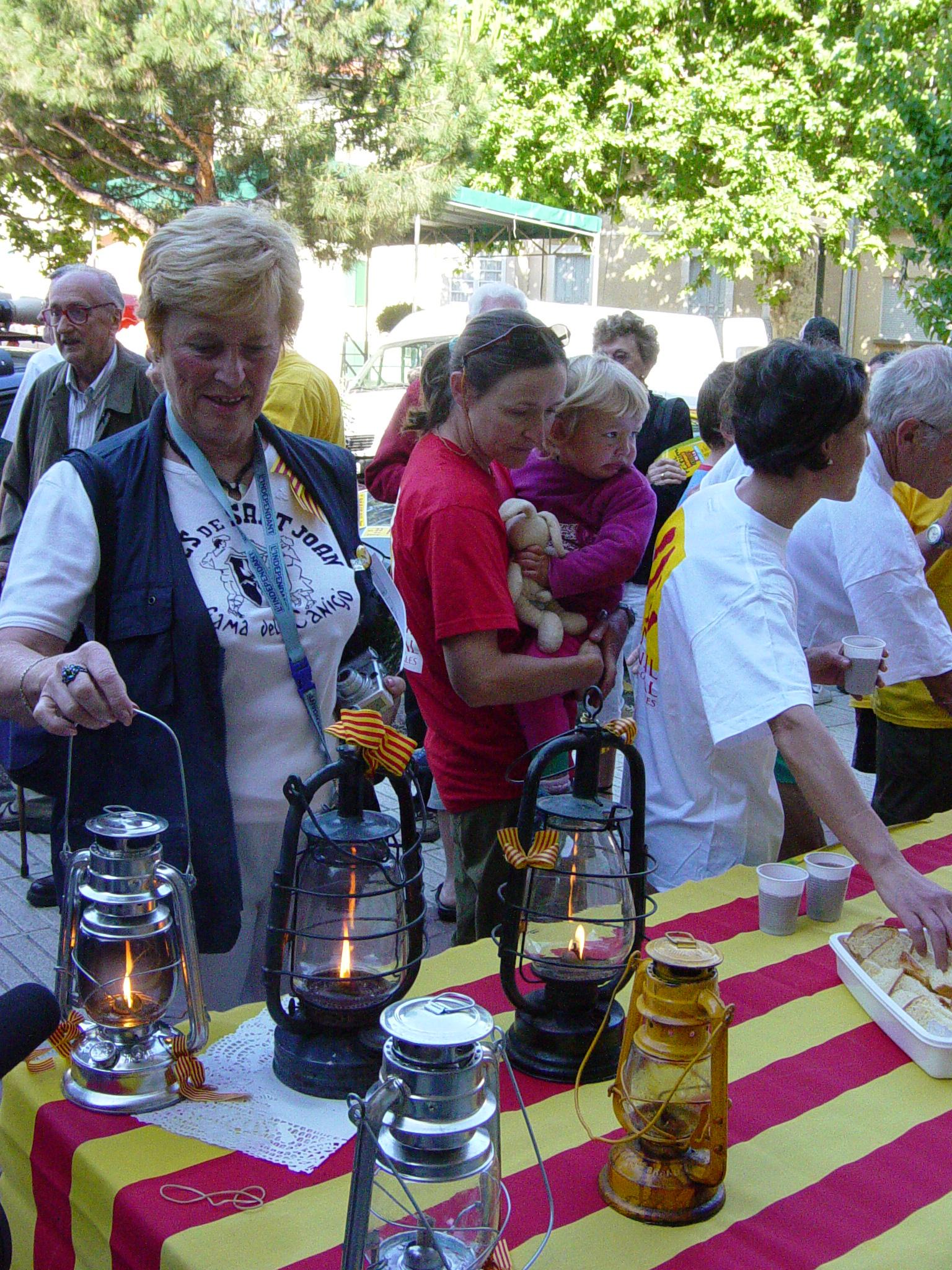 Persones recollint la Flama a la població de Vernet al Conflent