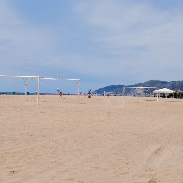 [dropcap color=”#336600″ font=”arial”]L[/dropcap]a platja de Castelldefels comptarà aquest estiu amb una zona multiesportiva on es podrà practicar diferents esports en la modalitat beach, és a dir, a la sorra. En aquest nou espai l’Ajuntament i el Patronat d’Esports han enllestit la instal·lació i delimitació de camps on es podrà jugar a futbol-platja, vòlei-platja o handbol-platja.