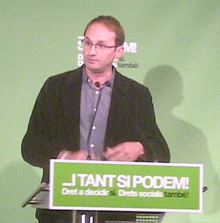 El candidat d’ICV-EUiA a la presidència de la Generalitat, Joan Herrera, durant la seva primera intervenció de la campanya electoral.