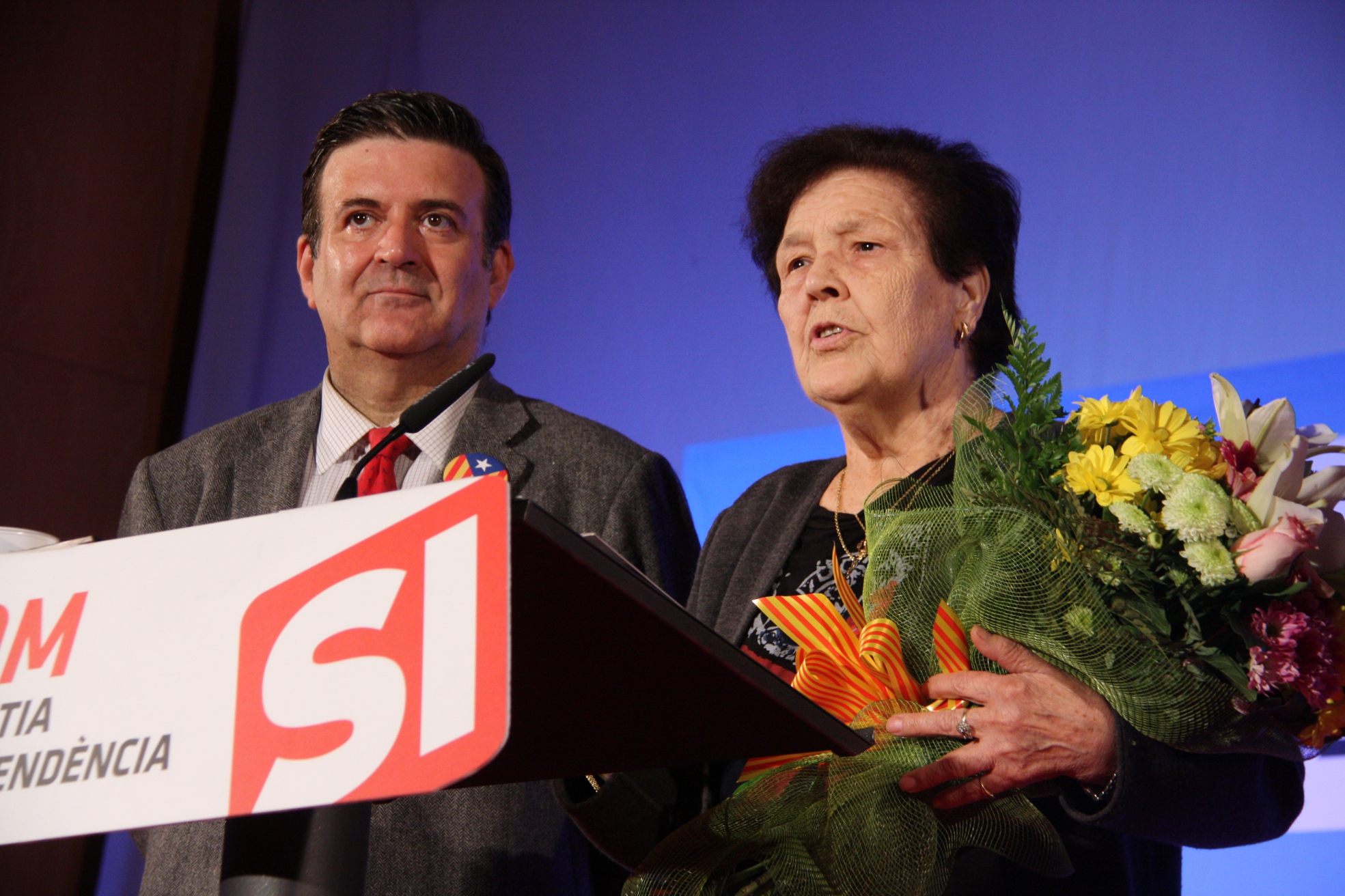 [dropcap color=”#336600″ font=”arial”]I[/dropcap]sabel Buján, l’àvia d’origen extremeny que va enregistrar un vídeo per dir-li a l’expresident d’Extremadura, Guillermo Fernández Vara, que no tornava a la seva terra perquè “no li donava la gana”, ha gravat unes altres imatges per demanar el vot de Solidaritat Catalana per la Independència (SI) i va fer costat al candidat Alfons López Tena en l’acte d’ahir al vespre a l’auditori del Palau Falguera de Sant Feliu de Llobregat. D’altra banda, abans d’iniciar el míting, López Tena va explicar als mitjans que proposa un sistema de “beques salari” de 1.000 euros lligades al rendiment acadèmic per garantir una educació universitària “pública, universal i de qualitat”.