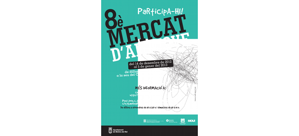 [dropcap color=”#336600″ font=”arial” fontsize=”40″]F[/dropcap]ins el 5 de gener, en horari de 18 a 21 hores de dilluns a dissabte, la seu del Cercle Artístic de Molins de Rei (c. Major, 79) acull la 8a edició del Mercat d’Art Jove.