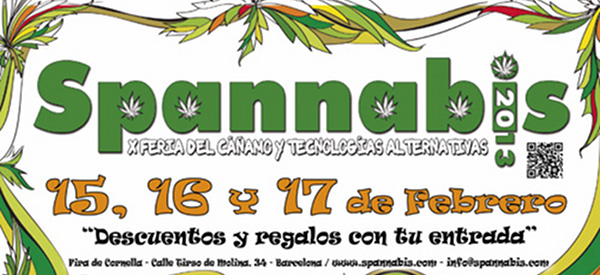 [dropcap color=”#336600″ font=”arial” fontsize=”40″]A[/dropcap]quest cap de setmana arriba al Baix Llobregat Spannabis, la la primera, tant pel que fa a cronologia com a importància, fira del cànem a l’estat espanyol. Serà a la Fira de Cornellà des de divendres 15 fins a diumenge 17 en horari d’11 a 20.30 hores.