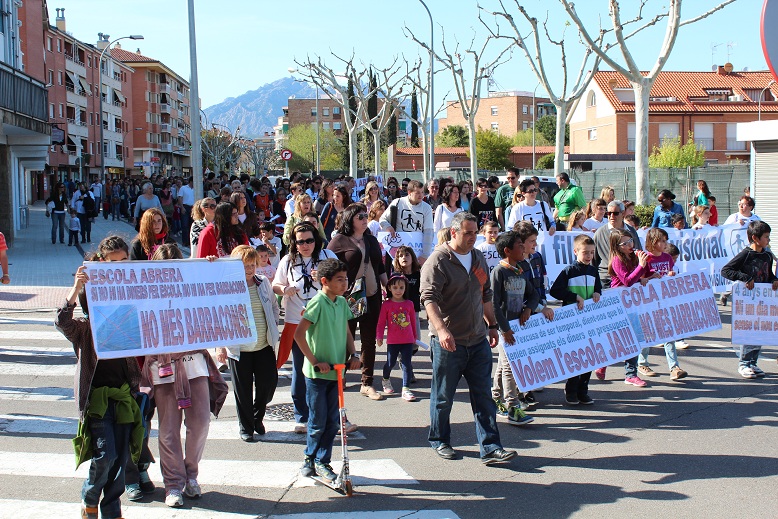 [dropcap color=”#336600″ font=”arial”]A[/dropcap]quest divendres 12 d’abril, més de 300 persones es van manifestar pels carrers d’Abrera donant suport a la reivindicació de construcció de la tercera escola del poble, que porta des del 2010 instal·lada en barracons dintre del recinte d’una altra escola, l’Ernest Lluch.