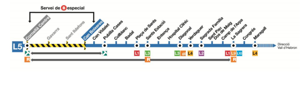 [dropcap color=”#336600″ font=”arial”]L[/dropcap]a resta de la línia 5, entre Can Boixeres i Vall d’Hebron, funcionarà amb normalitat.