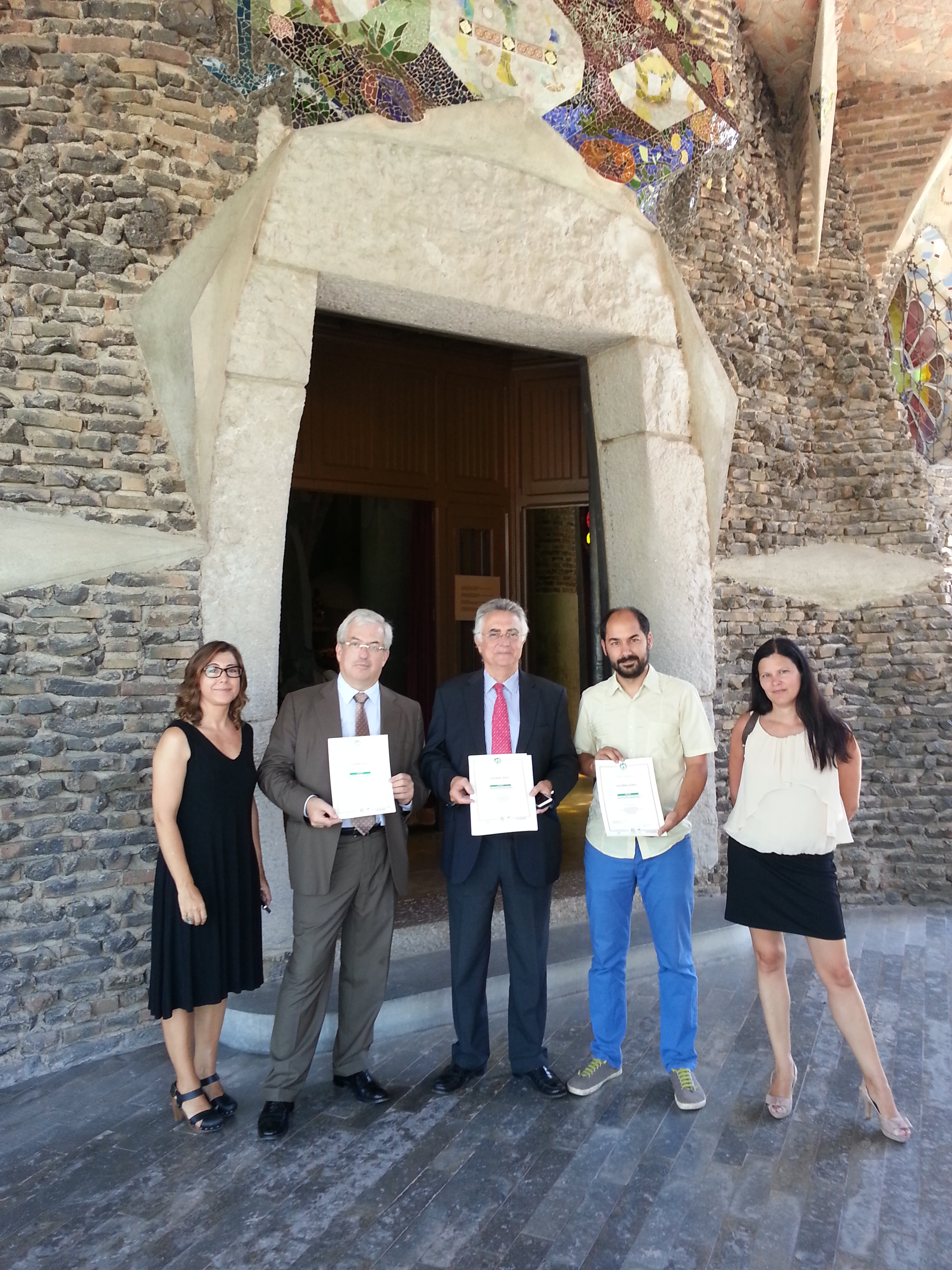 [dropcap color=”#336600″ font=”arial”]L[/dropcap]’acte de lliurament del certificat va tenir lloc al porxo de la Cripta de la Colònia Güell, amb la presència de Tomás Azcárate, President de l’Instituto de Turismo Responsable, Gerard Segú, alcalde de Santa Coloma de Cervelló, Maria Miranda, Consellera de Turisme del Consell Comarcal del Baix Llobregat, Eugènia Garcia, Gerent del Consorci de la Colònia Güell, i Ángel Díaz, President d’Advanced Leisure Services, l’empresa encarregada de la gestió de les visites turístiques a la Colònia Güell.