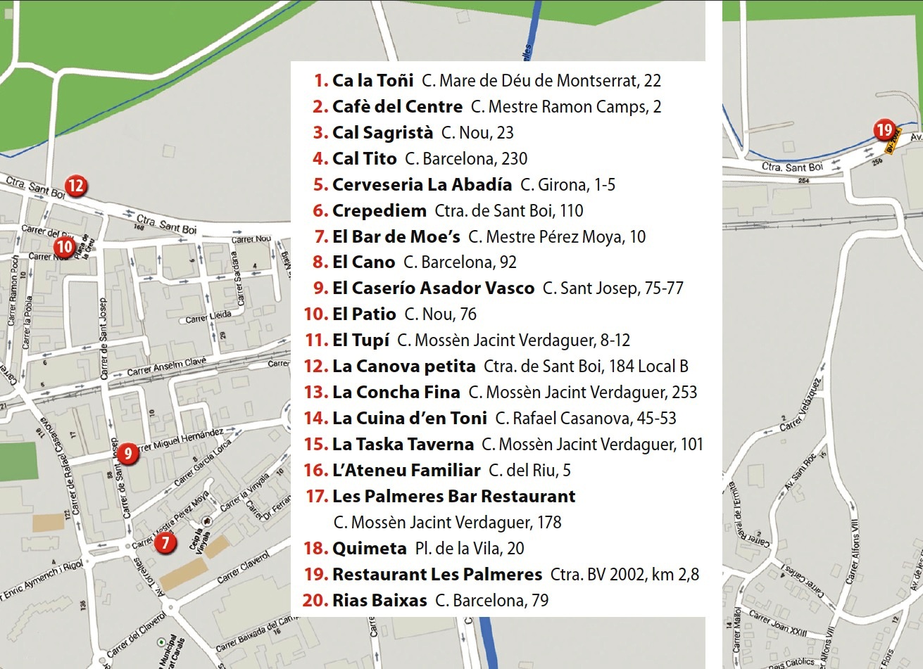 Aquests son els restaurant i bars que hi participen i la seva ubicació. Fes la ruta i gaudeix!
