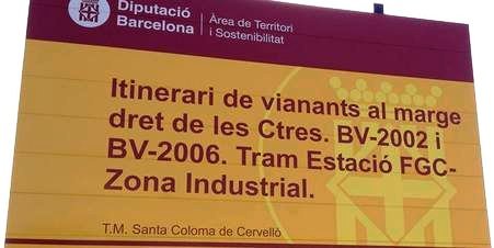 [dropcap color=”#336600″ font=”arial”]L[/dropcap]’itinerari que comunica l’estació de FGC de Santa Coloma amb la BV-2002 està en funcionament des de finals de juliol i permet accedir a peu o en bicicleta, amb protecció front els vehicles, a la zona industrial de la carretera, al Parc Agrari i als accessos a la zona de lleure del riu.