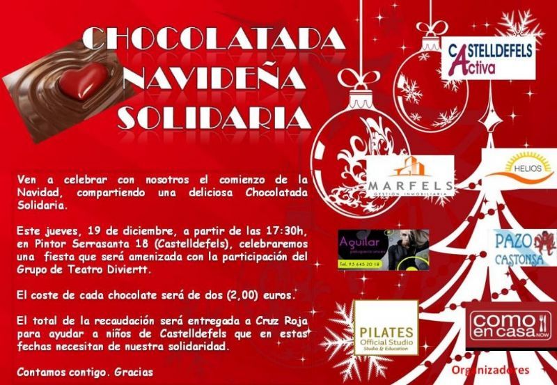 El 9 de gener, a partir de les 17.30 hores al carrer Pintor Serrasanta, 18 (entre Rambla Josep Tarradellas i Lluís Companys), comerciants de la ciutat en col·laboració amb Castelldefels Activa, han organitzat una xocolatada solidària