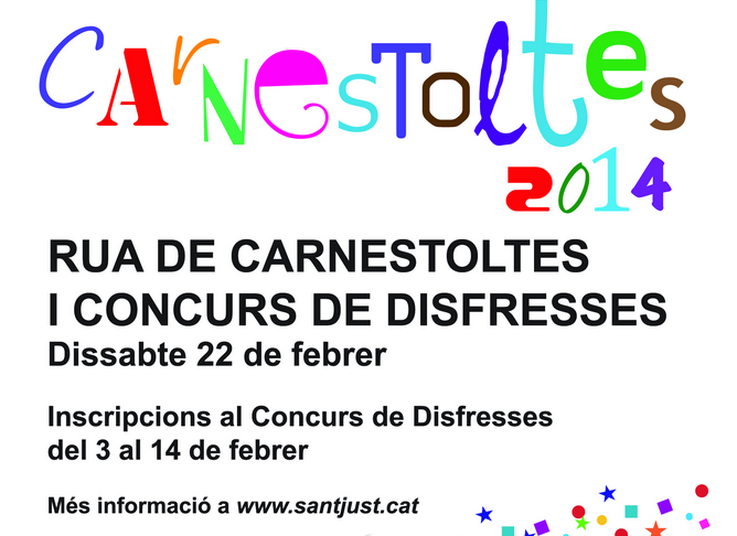 Fins al 14 de febrer, les persones interessades poden formalitzar la butlleta d’inscripció (adjunta al díptic d’activitats del Carnestoltes 2014) a l’Ajuntament. Paral·lelament, durant tot el mes de febrer hi haurà activitats relacionades amb aquesta festivitat dins l’Espai de Joc de la Vagoneta.