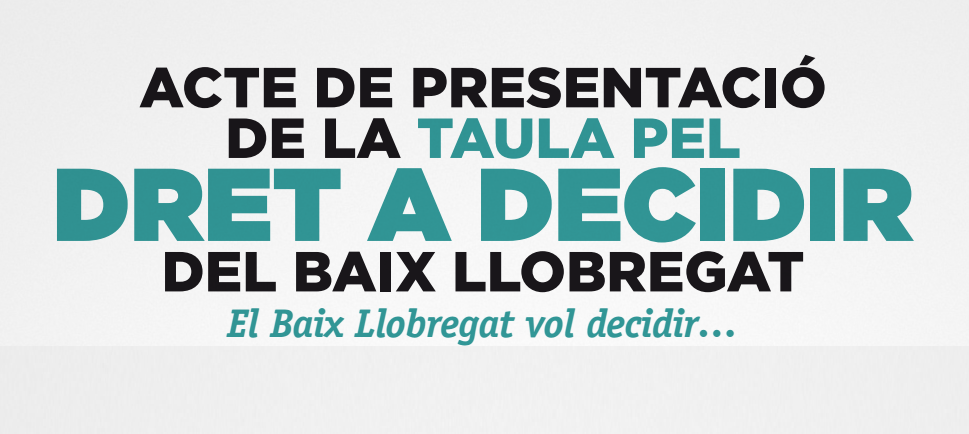 Amb aquest esperit, el passat 18 de desembre de 2013 es va constituir oficialment la Taula pel Dret a Decidir del Baix Llobregat, amb la finalitat de fer sentir la nostra veu col•lectiva a favor del dret fonamental de votar per decidir el nostre futur, un dret que va lligat a la voluntat de millorar el benestar social de la ciutadania, així com la defensa de la nostra llengua i cultura pròpies.