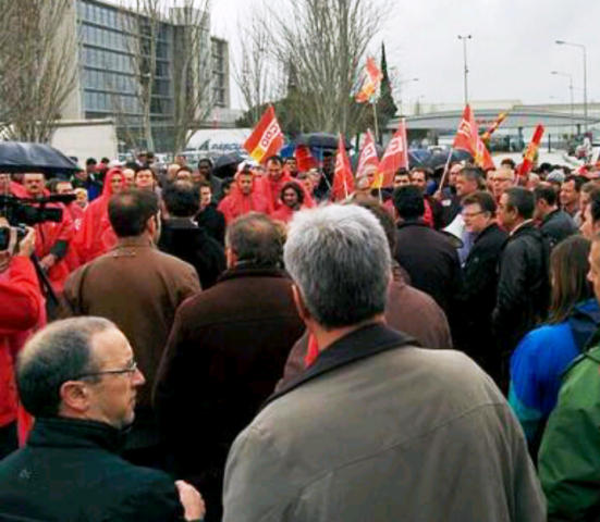 Más de 800 delegados y delegadas sindicales se han concentrado hoy en las entradas de Nissan y Seat en los polígonos industriales de la Zona franca de Barcelona y Can Amat de Martorell