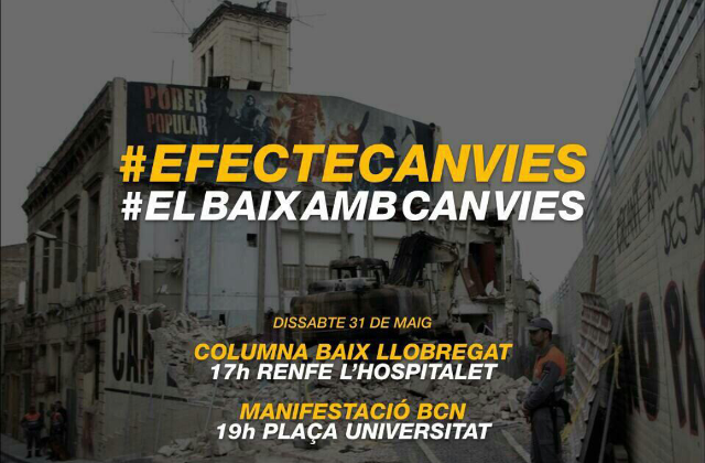 Diverses marxes provinents de diversos barris i d¡altres comarques com el Baix Llobregat, han confluït primer la Plaça Universitat i després a la Plaça Espanya, per participar a la primera gran protesta contra el desallotjament del centre social