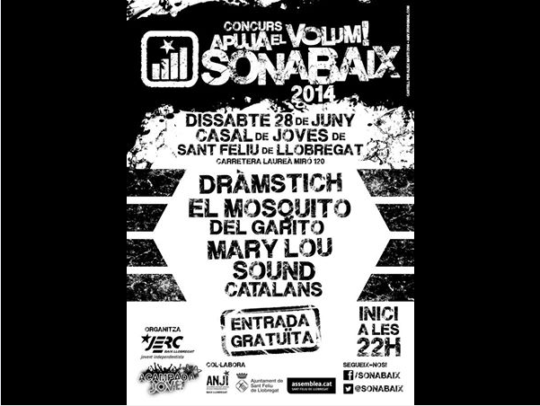 El concurs de música jove del Baix Llobregat torna amb força en la seva segona edició. El SonaBaix d’enguany es celebrarà a Sant Feliu de Llobregat i comptarà amb els grups Dràmstich, El Mosquito del Garito, Mary Lou i Sound Catalans.