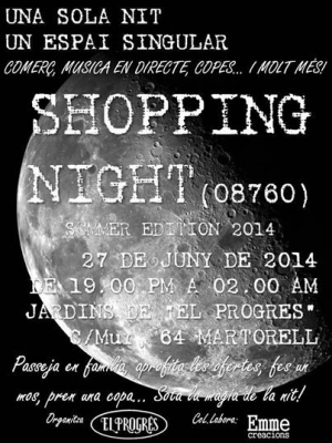 De 20 a 24h, els carrers de Ferran Puig, Frederic Soler, Verge de Montserrat, Carretera de la Marina i Lleida obriran les seves botigues per celebrar una nit de compres amenitzada amb diverses activitats