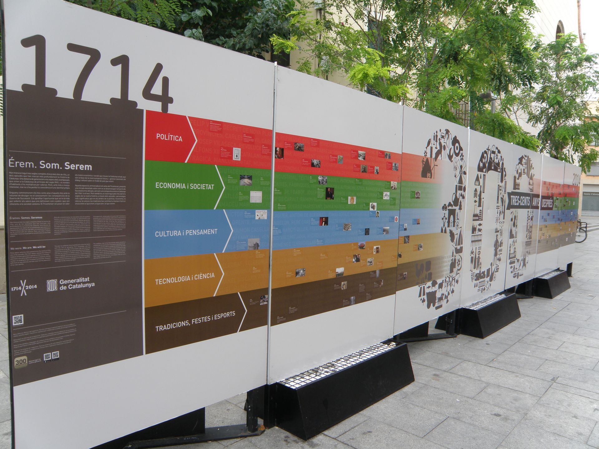 A través de 18 plafons, l’exposició fa un recorregut per la història de Catalunya del 1714 al 2014. També para atenció a com es va desenvolupar la Guerra de Successió i dedica un espai a comparar com era el país a principis del segle XVIII i com és avui en els àmbits de la política, l’economia, la societat, la ciència, la cultura i les tradicions.