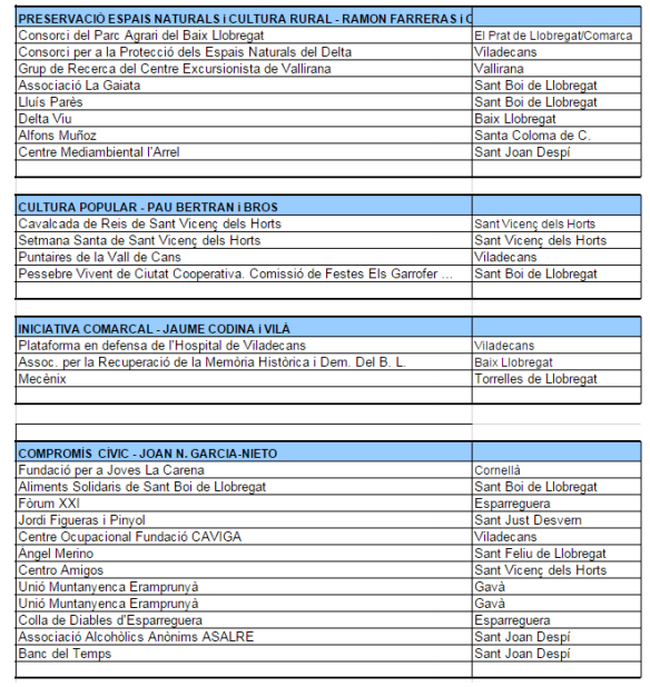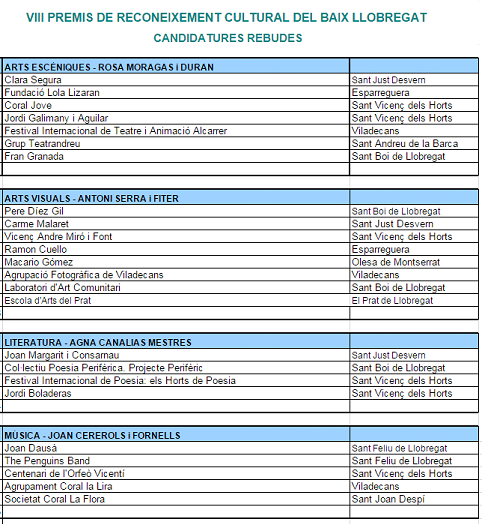 Els premis que convoca el Centre d’Estudis Comarcals del Baix Llobregat, han rebut enguany una vuitantena de candidatures, on hi són representants de manera directa 19 municipis de la comarca, a més de les nominacions a entitats de caràcter comarcal