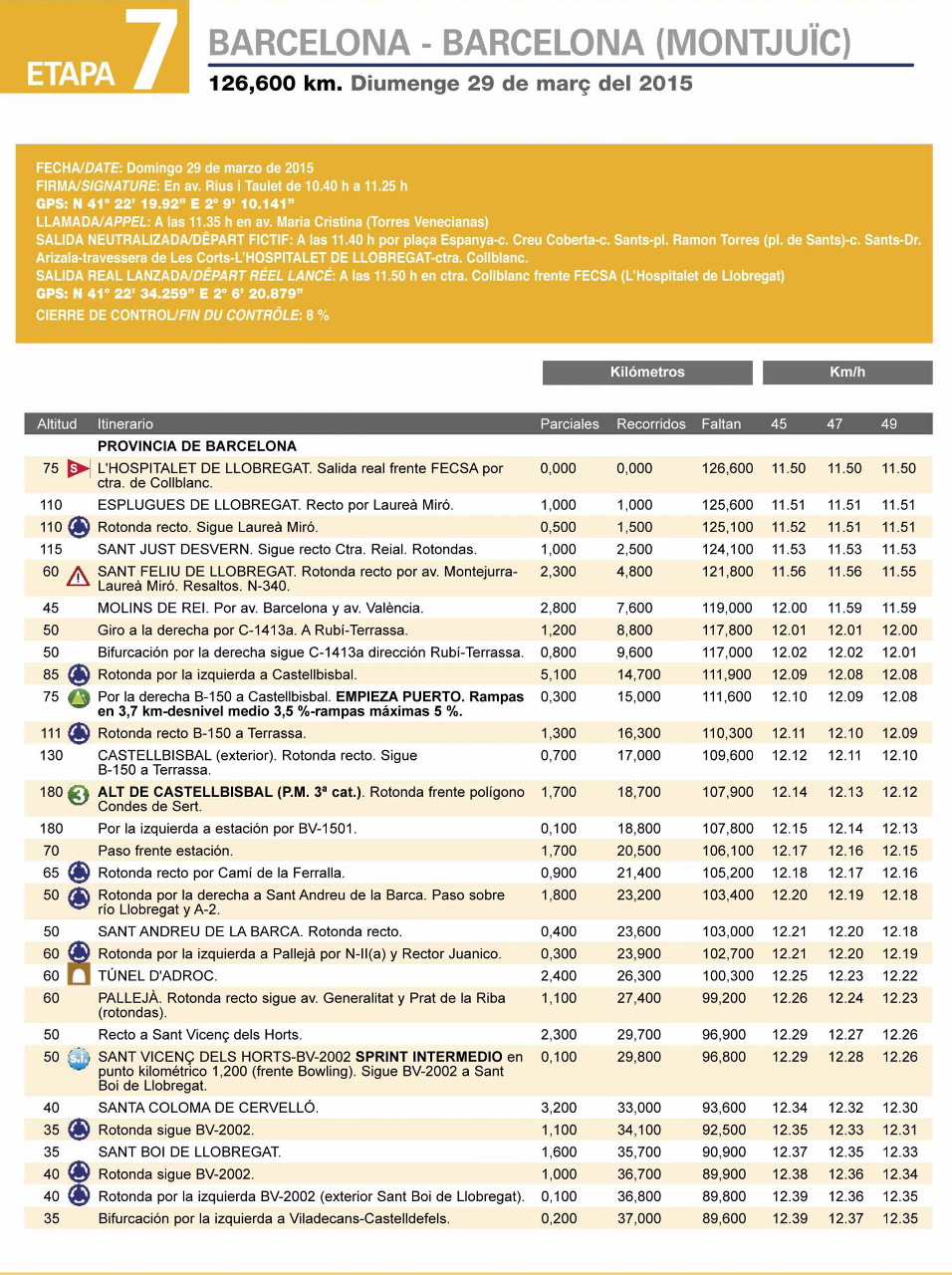 Diumenge 29 de març, la 7ª i darrera etapa de la cursa creurarà 14 municipis del Baix Llobregat: Esplugues, Sant Just, Sant Feliu, Molins de Rei, Sant Andreu de la Barca, Pallejà, Sant Vicenç dels Horts, Santa Coloma de Cervelló, Sant Boi, Viladecans, Gavà i Castelldefels.