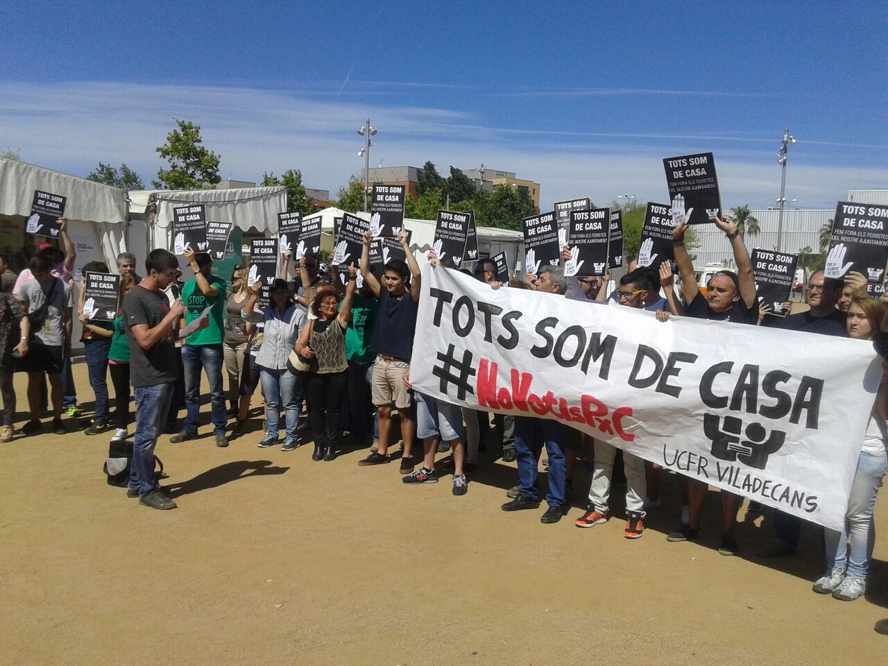 Una cinquantena de persones van manifestar-se ahir davant de la parada de PXC a la Fira d’entitats de Sant Isidre a Viladecans, mentre que desenes més es van afegir espontàniament a la concentració promoguda per Unitat Contra el Feixisme i el Racisme (UCFR)