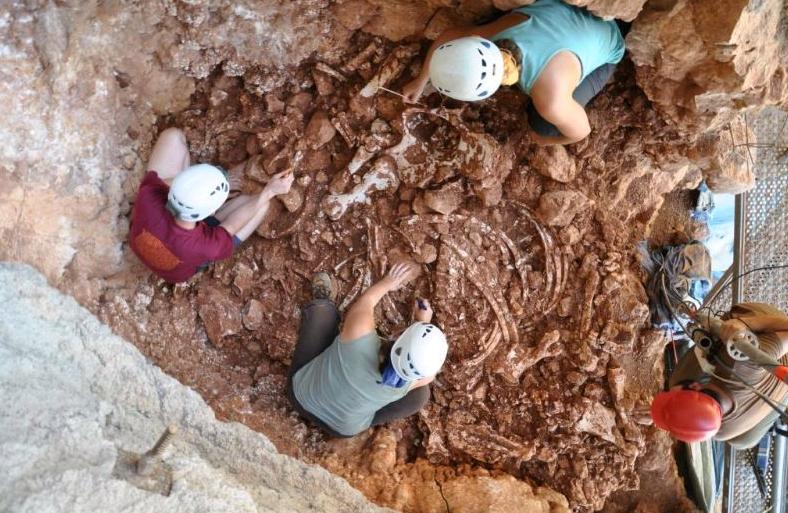 Els investigadors, Montserrat Sanz, de UNIARQ-Universitat de Lisboa i Joan Daura del GRQ-SERP de la Universitat de Barcelona, suposen que probablement el rinoceront va caure a la cova de manera accidental.