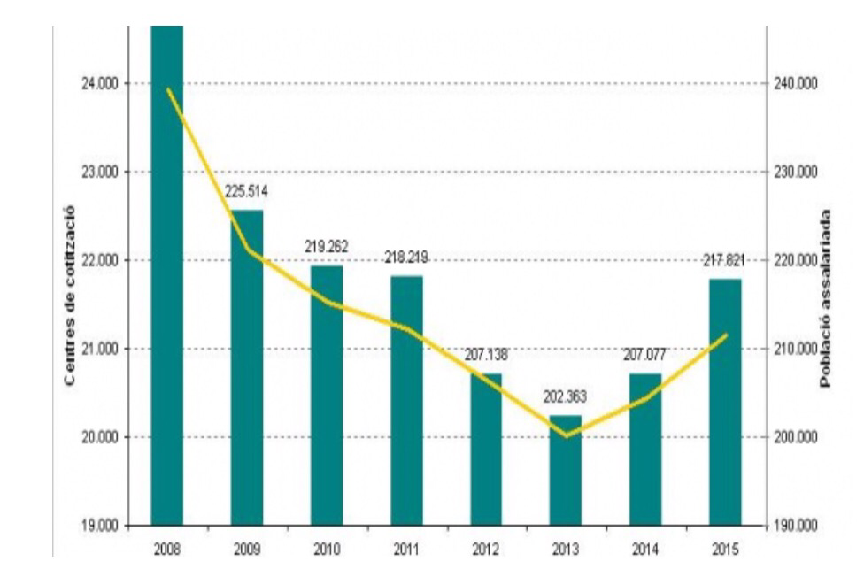 El 2014 es va iniciar una lleu recuperació que, de moment, s’està confirmant al llarg de 2015 pel que fa a l’augment de llocs de treball. Això porta a plantejar el tema de quines són les activitats econòmiques que estan desenvolupant un paper més important en la recuperació