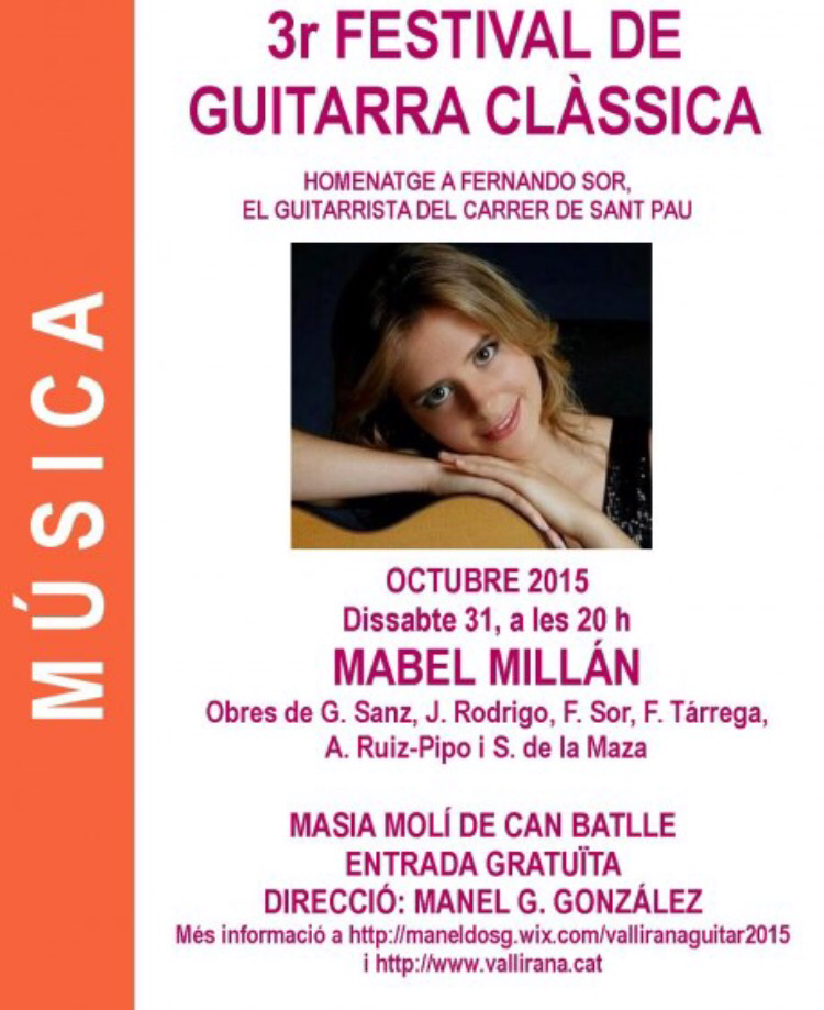 El proper dissabte 31 d’octubre, a les 20 h, Mabel Millán tancarà el 3r Festival de guitarra clàssica de Vallirana