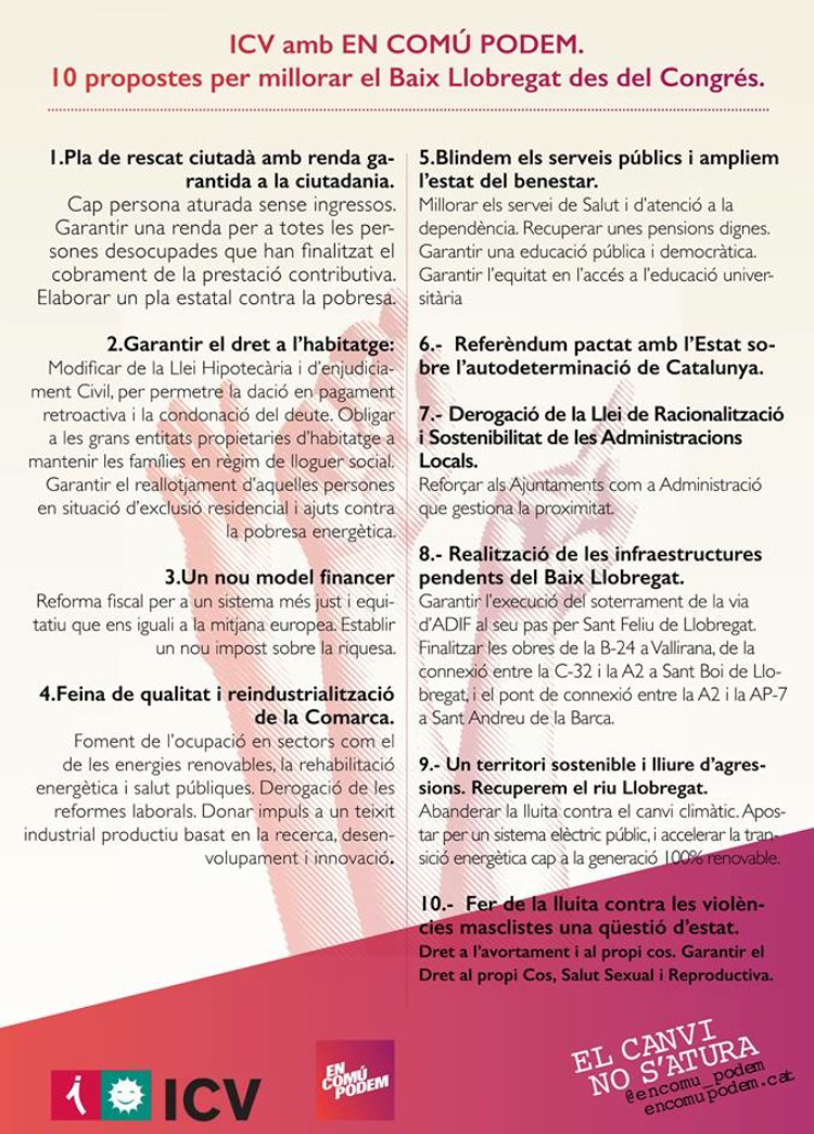 Les 10 propostes d’En Comú Podem per al Baix Llobregat