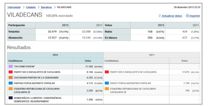 2.282 climentons i climentones van exercir el seu dret a vot. Aquests són els resultats provisionals de les Eleccions Generals 2015 a Sant Climent de Llobregat: