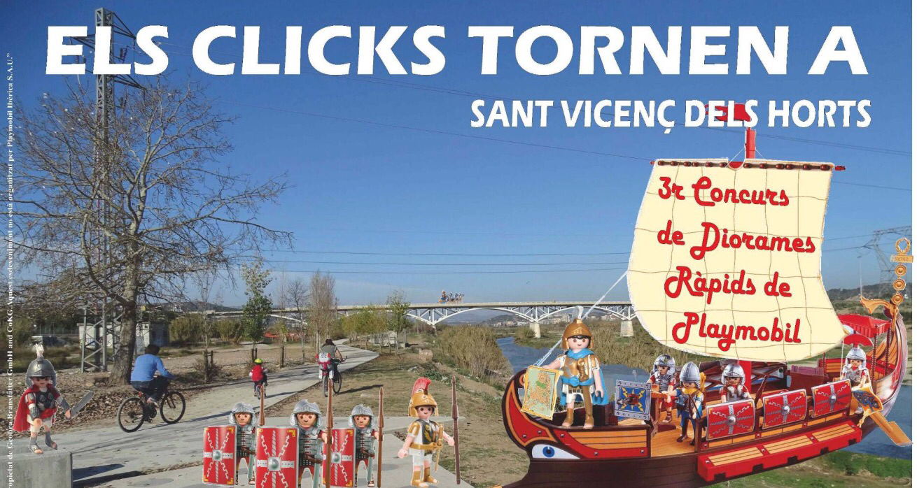 Els clicks de Playmobil tornen un any més a Sant Vicenç dels Horts. El departament de Joventut i Infància de l’Ajuntament de Sant Vicenç dels Horts convoca per tercer any consecutiu el Concurs de Diorames ràpids de Playmobil, amb la col·laboració de l’entitat Somosclicks, amb l’objectiu de potenciar la creativitat i la participació infantil en l’àmbit de la Mostra 2016.