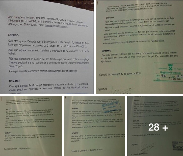 El Departament d’Ensenyament vol reduir 21 grups de P3 en diversos municipis de la comarca del Baix Llobregat pel proper curs 16-17, segons CCOO.