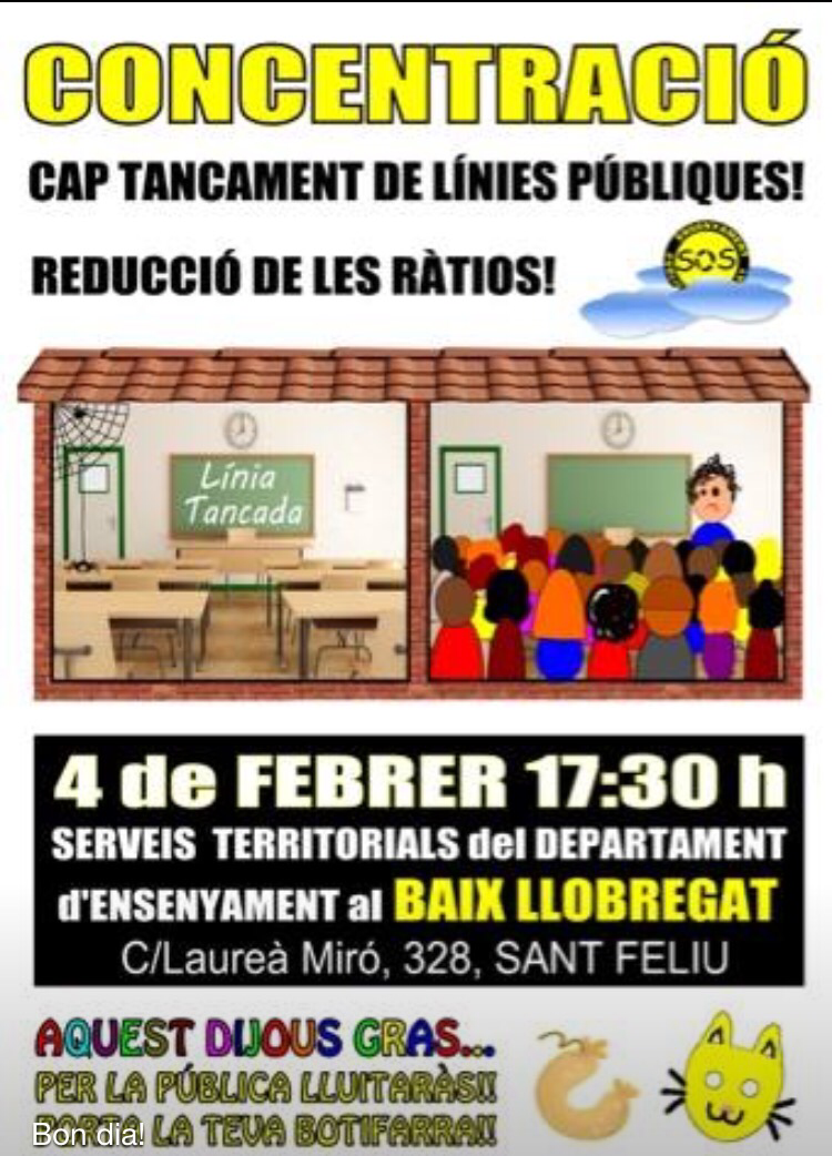 Davant l’anunci del Departament d’Ensenyament i els serveis territorials del Baix Llobregat de tancar 21 línies de P3 el pròxim curs, els grups parlamentaris del PSC i Catalunya Sí que es Pot han presentat una proposta de resolució al Parlament per evitar-ho. Acusen al govern d’utilitzar la baixa natalitat “com a excusa per empobrir l’educació pública” en comptes de refuit les ràtios a les aules