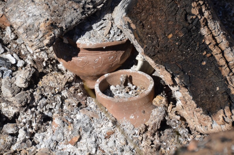 En el cas de la sessió d’aquest dissabte, “la cocció s’ha fet d’acord amb aquesta tècnica, lleugerament evolucionada i que permet assolir una temperatura lleugerament superior ja que les peces se situen sobre un llit de llenya dins un clot excavat prèviament en el terreny, que es cobreix també amb més llenya. En aquesta ocasió, la temperatura ha superat els 900º”, matisa el professor de l’assignatura Metodologia arqueològica III.