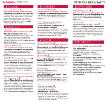Com en anteriors edicions, l’Institut Oftalmològic Tres Torres tindrà la seva unitat mòbil a la plaça de la Bòbila de Can Vidalet per detectar i prevenir el glaucoma. També hi haurà un taller de primers auxilis a l’Associació de Veïns del Gall.