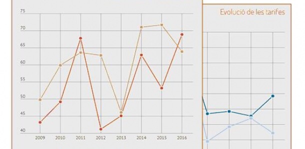 Totes 2 ocupacions (mes i setmana santa) continuen estant per sobre a la de 2009. En quant les tarifes, es continua observant el patró iniciat en el 2011, on la tarifa de setmana santa supera la de la mitjana del mes. Prenent el 2009 com any base, mentre la tarifa del mes continua per sota a la del 2009, la tarifa de setmana santa la supera.
