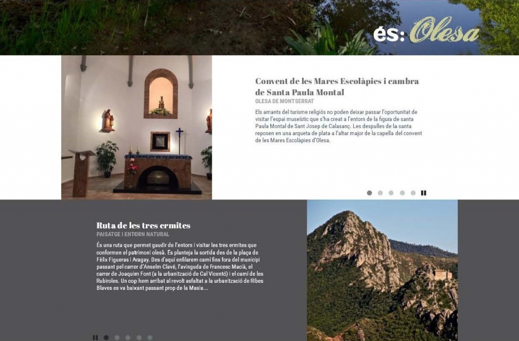 El web es divideix en 5 apartats concrets: què visitar, el cicle festiu, rutes, gastronomia, i agenda. Per l’elaboració del web de turisme l’Ajuntament s’ha reunit, des de ja fa un any, amb les entitats olesanes, que segons el govern, han rebut positivament aquesta iniciativa municipal. S’ha creat enllaços a les respectives pàgines web i s’ha potenciat els seus atractius, amb informació exhaustiva sobre la seva activitat i com veure-la o participar-hi.