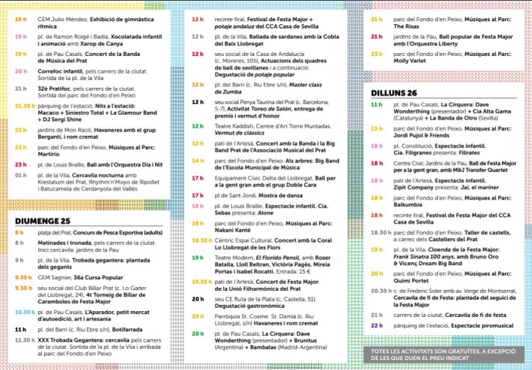 Moltes activitats se celebraran per tota la ciutat: cultura popular, música, circ, ball, espectacles infantils, teatre, activitats esportives…