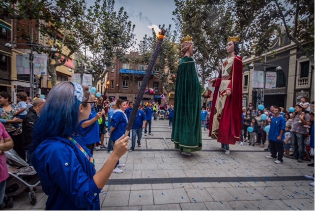 Els capgrossos més representatius de la ciutat, el Nas de Carxofa i el Cap de Meló, van convidar a tots els nens i nenes presents a la pl. de la Vila amb els seus globus blaus a picar a la porta de l’Ajuntament. I així va ser, els petits van picar i repicar, i un cop obertes les portes, la Griselda i el Rotllà van sortir acompanyats de la peça del Toc d’Inici que ja va interpretar-se l’any passat!