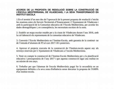 Aquest, entre d’altres, és un dels acords que es van aprovar ahir a la comissió d’Ensenyament al Parlament. Aquest compromís vol acabar amb la precària situació de l’escola viladecanenca -des de fa anys amb barracots i amb un perill constant de tancament-, i va ser aprovat amb els vots de l’oposició -inclosa la CUP-, mentre que Junts pel Sí hi va votar en contra