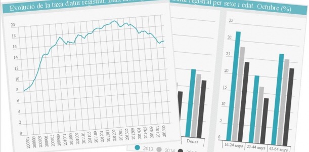 El nombre de persones registrades a les oficines al Baix Llobregat ha disminuït en 7.459 persones respecte al novembre de 2015. La baixada de l’atur d’aquest mes s’ha donat entre les dones (69 aturades menys), i també entre els homes (175 aturats menys). Les dones continuen tenint una taxa d’atur registral superior a la masculina (15,1% davant el 10,9%).
