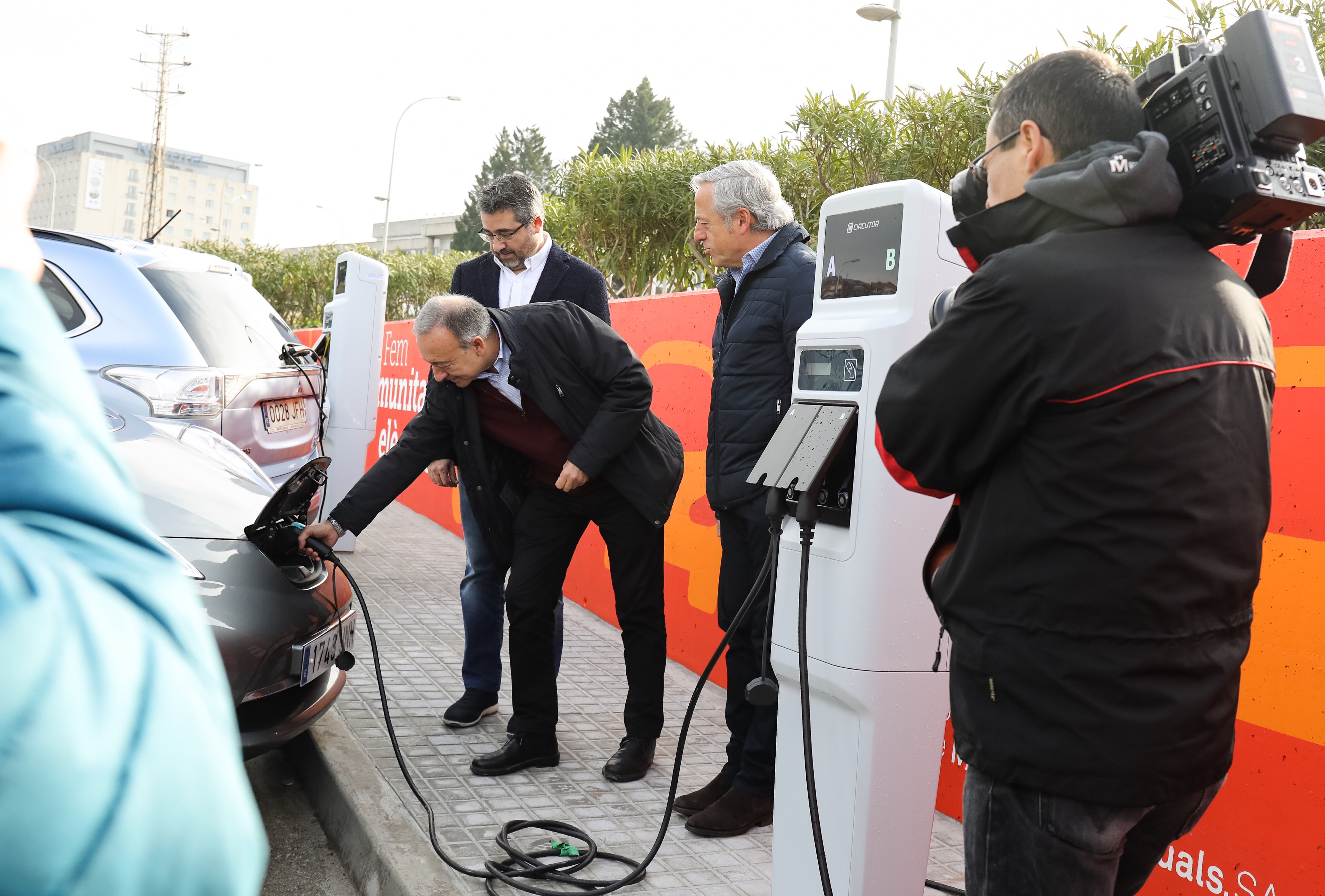 L’aliança de dues grans corporacions, l’AMB i la CCMA, ens que gestiona TV3 i Catalunya Ràdio, fa realitat, un cop més, una mobilitat més neta i sostenible. Antoni Poveda, vicepresident de Mobilitat i Transport de l’AMB, i Andreu Martínez, director d’Estratègia Corporativa i de Recursos Humans de la CCMA, han inaugurat avui els primers punts de recàrrega de vehicles elèctrics instal·lats al pàrquing de treballadors de la seu de la CCMA a Sant Joan Despí, una nova mesura que facilitarà el canvi d’hàbits entre els usuaris i ajudarà a lluitar contra la contaminació atmosfèrica.