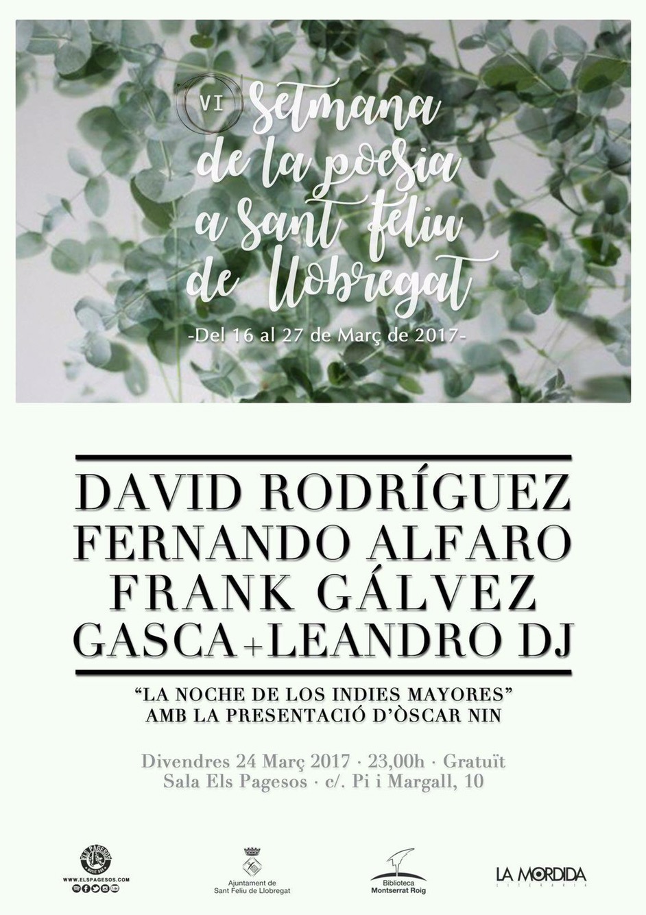 Aquest divendres 3 de març, es va presentar a la Llibreria Calders de Barcelona la VI Setmana de la Poesia de Sant Feliu, amb la participació dels poetes i poetesses Núria Domènech, Míriam Cano, Marta Pérez i Sierra, Jaume C. Pons Alorda, David Castillo i Dani Flamaradas